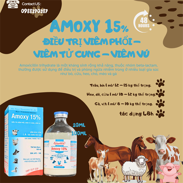 ✨🔥 AMOXY 15% – KHÁNG SINH PHỔ RỘNG, ĐẶC TRỊ BỆNH ĐƯỜNG HÔ HẤP, VIÊM TỬ CUNG, VIÊM VÚ HIỆU QUẢ! 🔥✨