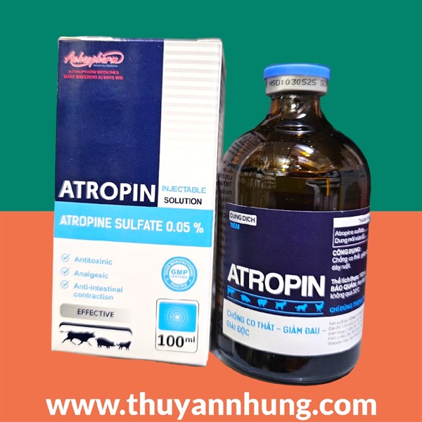 Chống co thắt (giảm co thắt ruột, co thắt khí phế quản)Giảm đau (tiền mê trong phẫu thuật)Giải độc (ngộ độc Pilocarpine, Dipterex, thuốc xịt rầy, vaccin…)Hỗ trợ điều trị viêm loét dạ dày ruộtChống chỉ định: