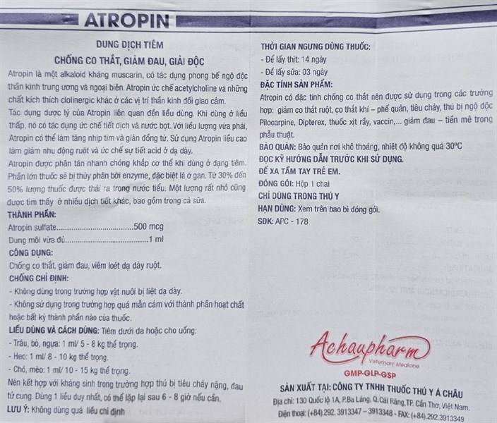 Atropin sulfate 500 mcgDung môi vừa đủ 1 mlCông dụng: