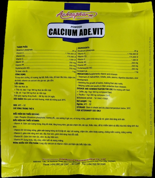 Hỗ trợ điều trị triệu chứng còi xương, bại liệt, thiếu máu và các vấn đề do thiếu vitamin và canxi ở gia súc, gia cầm.
