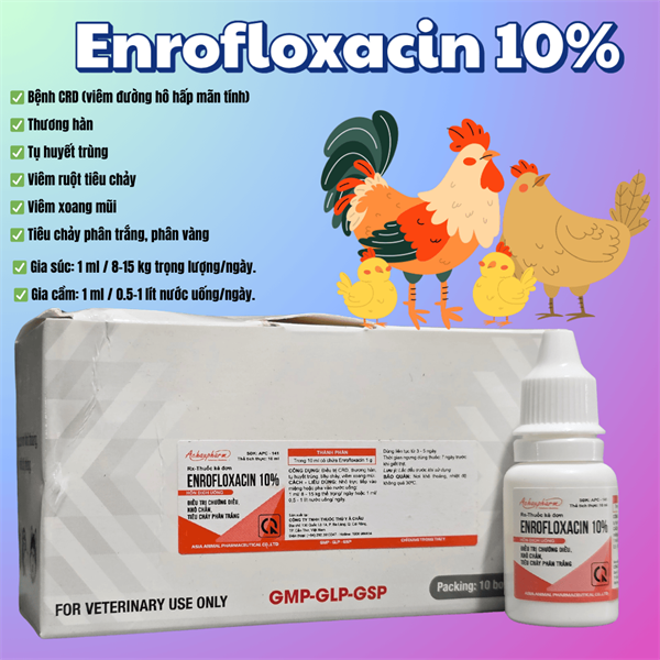 Á Châu Enrofloxacin 10% ORAL 10ml – Chướng diều, khô chân, sã cánh – Lọ 10ml