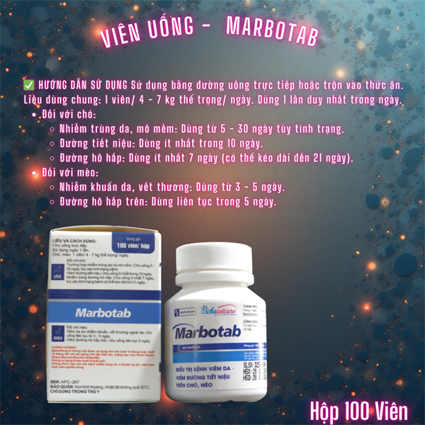 Viên Uống Marbotab (Hộp 100 Viên) – Hỗ Trợ Giải Quyết Viêm Da, Tiết Niệu Và Hô Hấp Cho Chó Mèo