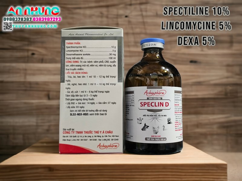 Spectinomycin là kháng sinh thuộc nhóm Aminosid, ít độc. Trong thú y nó được sử dụng trong điều trị các bệnh nhiễm trùng đường hô hấp và đường ruột do vi khuẩn. Phổ kháng khuẩn rộng, có khả năng ức chế tổng hợp protein trong tiểu đơn vị 305. Được dùng cho gia súc, cửu, gia cầm dưới dạng thuốc tiêm, dung dịch uống hoặc trộn thức ăn.