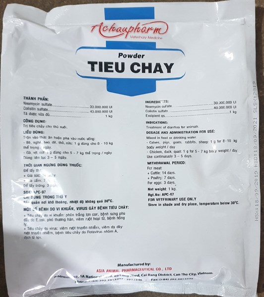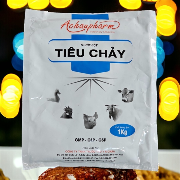 Bột TIEU CHAY Achaupharm (1kg) – Công Nghệ Than Hoạt Tính Hấp Phụ Độc Tố, Hỗ Trợ Đường Ruột Khỏe Mạnh Cho Vật Nuôi.