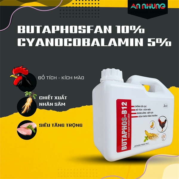 - Butafosfan (100 g): 💥 Là một hợp chất phốt pho hữu cơ, đóng vai trò quan trọng trong quá trình chuyển hóa năng lượng, tổng hợp protein và lipid trong cơ thể vật nuôi.