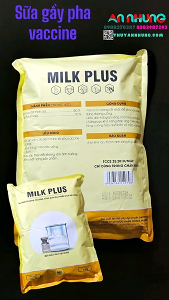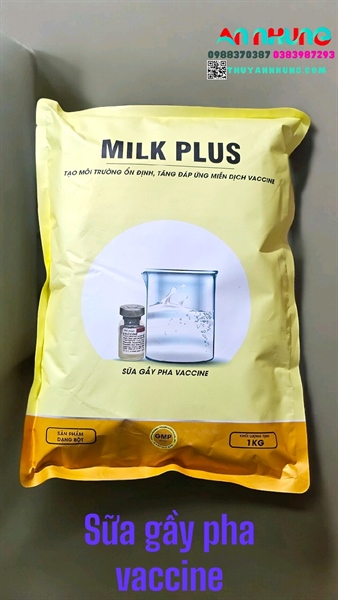 Ổn định pH: Sữa gầy giúp duy trì độ pH ổn định trong nước pha vaccine, bảo vệ vaccine khỏi bị bất hoạt do môi trường axit hoặc kiềm.Bảo vệ vaccine: Sữa gầy tạo một lớp màng bảo vệ xung quanh các virus vaccine, giúp chúng tránh khỏi các tác động bất lợi từ các chất có trong nước như clo, kim loại nặng, hoặc các chất sát trùng khác.Kéo dài thời gian sống của vaccine: Nhờ môi trường ổn định và lớp màng bảo vệ, sữa gầy giúp kéo dài thời gian sống của virus vaccine trong nước, đảm bảo hiệu quả của vaccine khi gia cầm uống vào.2. Tăng cường hiệu quả của vaccine: