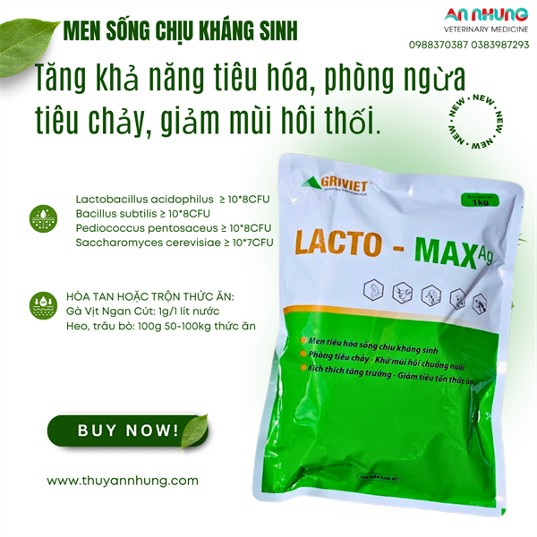 #LactoMaxAg #MenTieuHoaSong #ChiuKhangSinh #PhongTieuChay #KhuMuiHoiChuong #KichThichTangTruong #GiamTonThucAn #ThuocThuY #ChanNuoiHieuQua