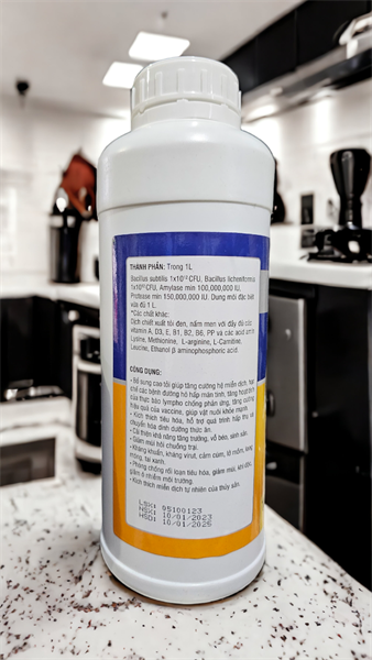 • Liều cho gia súc, gia cầm: 1 ml/ 1-2 lít nước hoặc 1 ml/ 0.5-1 kg thức ăn hoặc 1 ml/5-10 kg thể trọng/ ngày.