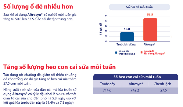 Kết quả: Đa số heo hậu bị sẽ lên giống trở lại trong khoảng 3-6 ngày sau khi ngưng sử dụng sản phẩm.