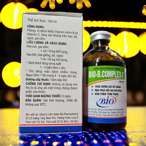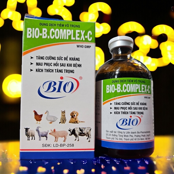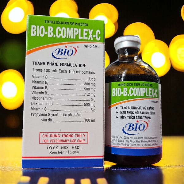 BIO-B.COMPLEX® là một sản phẩm bổ sung vitamin nhóm B và C, được thiết kế đặc biệt cho việc sử dụng trong thú y. Dưới đây là chi tiết về thành phần và công dụng của sản phẩm: