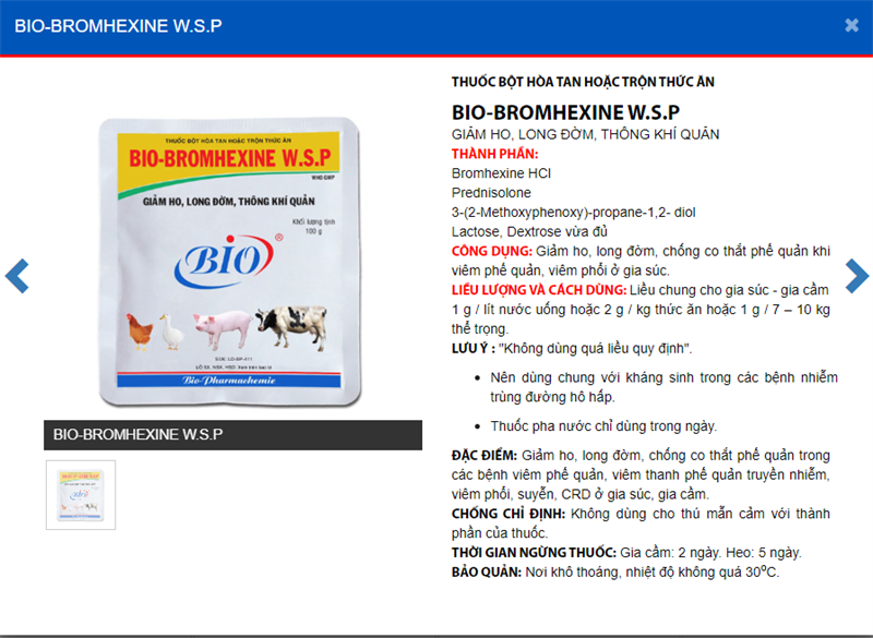ĐẶC ĐIỂM: Giảm ho, long đờm, chống co thắt phế quản trong các bệnh viêm phế quản, viêm thanh phế quản truyền nhiễm, viêm phổi, suyễn, CRD ở gia súc, gia cầm.