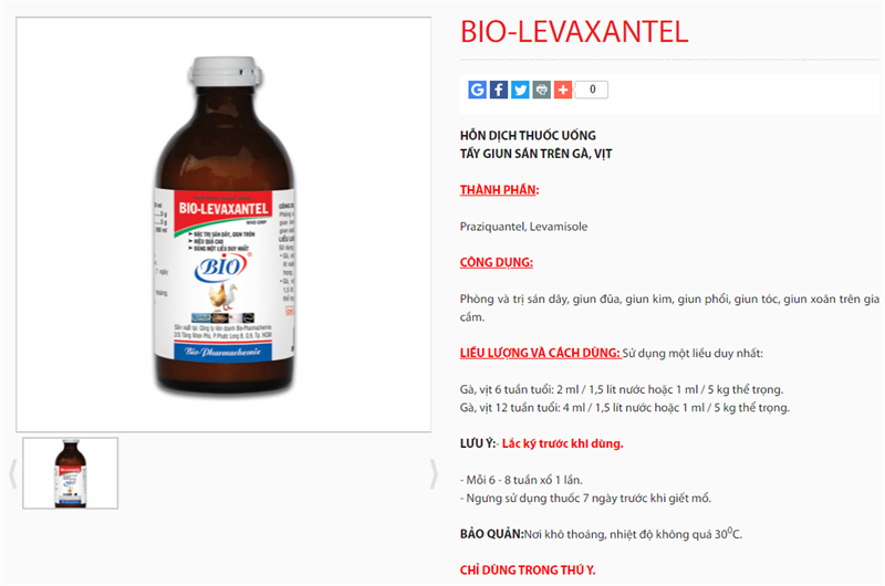 BIO-LEVAXANTELHỒN DỊCH THUỐC UỐNG TẨY GIUN SÁN TRÊN GÀ, VỊT