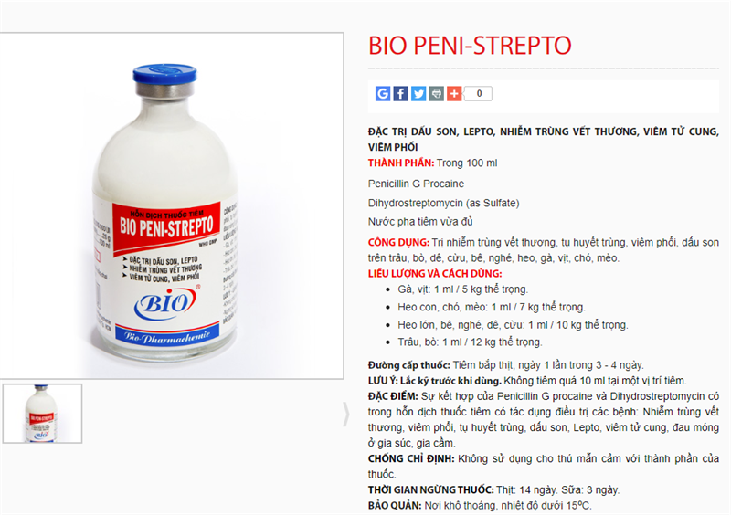 – Trâu, bò: 1ml / 12 kg thể trọng.Đường cấp thuốc:Tiêm bắp thịt, ngày 1 lần trong 3-4 ngày.
