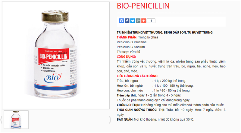 Heo con, chó mèo : 1 lọ / 60 – 80 kg thể trọng.Tiêm bắp thịt, ngày 1 – 2 lần trong 4 – 5 ngày.