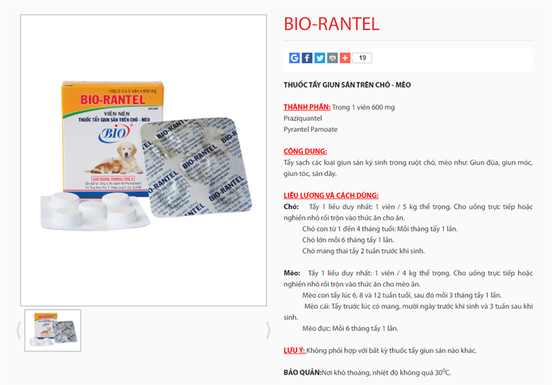 BIO-RANTEL: THUỐC TẨY GIUN SÁN TRÊN CHÓ – MÈOTHÀNH PHẦN: Trong 1 viên 600 mg