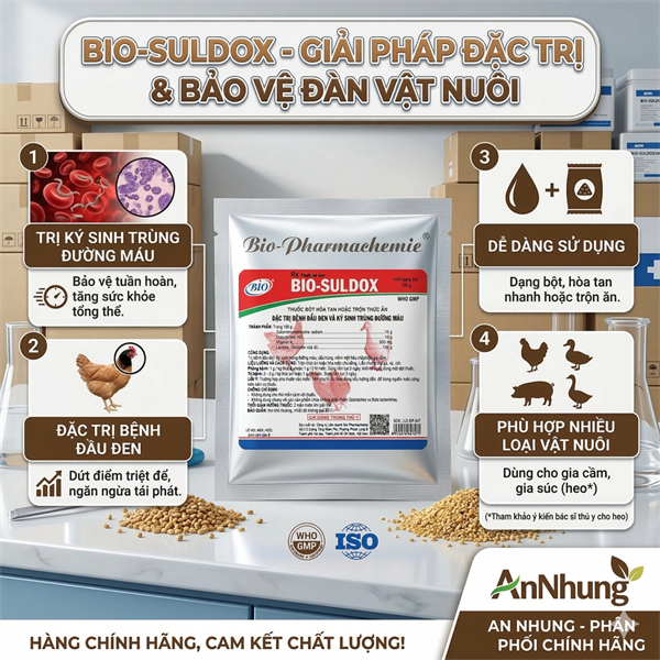Bà con đang lo lắng về tình trạng đàn gia cầm ủ rũ, tiêu chảy hoặc các vấn đề liên quan đến ký sinh trùng? Đừng lo! Sản phẩm BIO-SULDOX từ thương hiệu uy tín Bio-Pharmachemie chính là “người đồng hành” tin cậy, giúp đàn vật nuôi nhanh chóng lấy lại phong độ và tăng trưởng ổn định. 🐥🦆