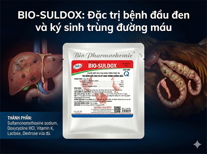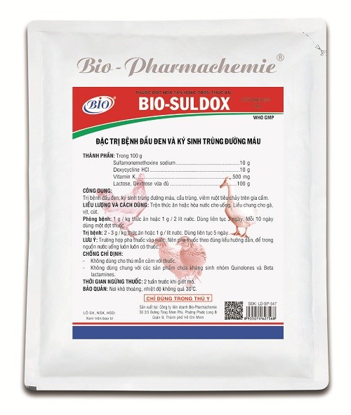 Bột Hòa Tan BIO-SULDOX (100g) – Hỗ Trợ Xử Lý Đầu Đen, Ký Sinh Trùng Đường Máu Cho Gà, Vịt, Cút.