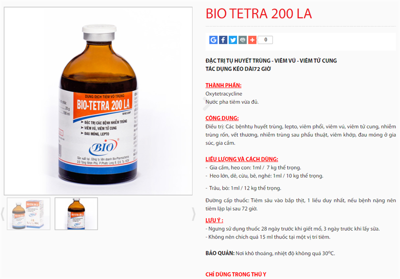 CÔNG DỤNG: Trị tụ huyết trùng, Lepto, viêm phổi, viêm vú, viêm tử cung, nhiễm trùng rốn, vết thương, viêm khớp trên trâu, bò, dê, cừu, bỏ nghề, heo, gia cầm.