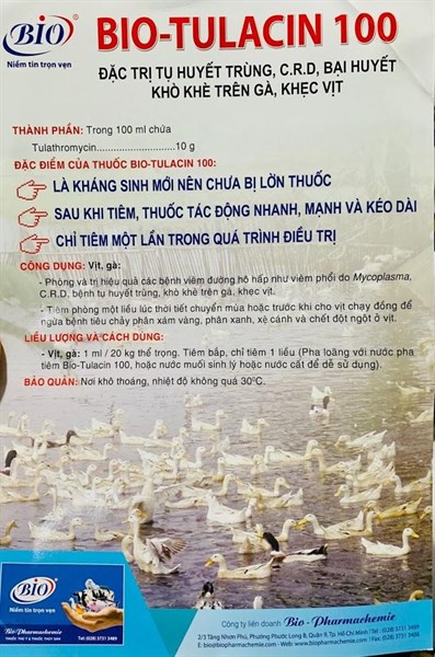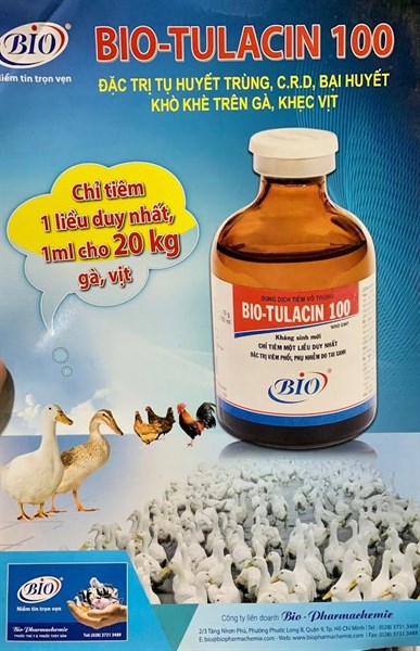 BIO-TULACIN 100 CHỈ TIÊM MỘT LIỀU DUY NHẤT, ĐẶC TRỊ VIÊM PHỔI, PHỤ NHIỄM DO TAI XANH