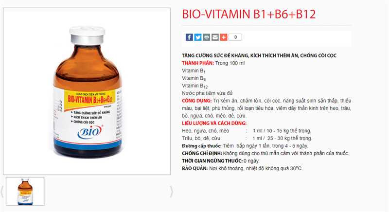 Heo, trâu, bò, ngựa, chó, mèo, dê, cừu:Điều trị các trường hợp kém ăn, chậm lớn, còi cọc, năng suất sinh sản thấp, các bệnh ; thiếu máu, bại liệt, phù thủng, rối loạn tiêu hóa, viêm dây thần kinh.Tăng sức đề kháng trong các bệnh nhiễm trùng, các trường hợp stress.LIỀU LƯỢNG VÀ CÁCH DÙNG: