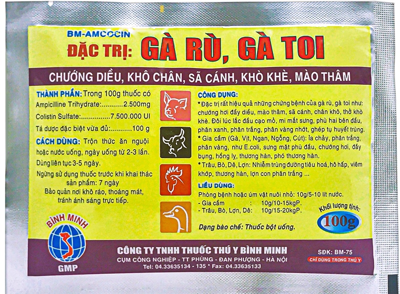 Đàn gia cầm của bạn đang gặp phải các vấn đề nghiêm trọng như chướng diều, khô chân, sã cánh, khò khè hay phân xanh, phân trắng? Đã đến lúc sử dụng BM – AMCOCIN – công thức đặc hiệu kép giúp giải quyết nhanh chóng các bệnh lý phức tạp trên gia cầm và gia súc!