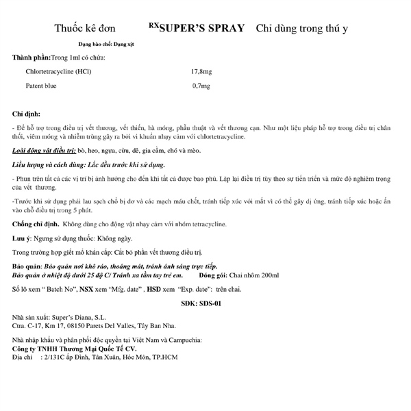 CV SUPER SPRAY – Chlotetracyciline HCL 200ml