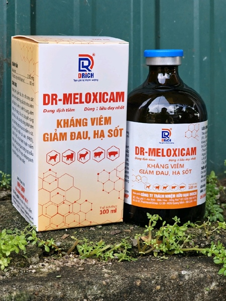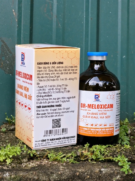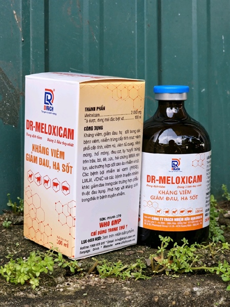 THÀNH PHẦNMeloxicam……………………………….. 2.000 mgTá dược, dung môi đặc biệt vđ………….. 100 mlCÔNG DỤNGKháng viêm, giảm đau, hạ sốt trong các bệnh viêm, nhiễm trùng cấp tính như: viêm phổi cấp tính, viêm vú, viêm tử cung, viêm móng, thối móng, đau cơ, tụ huyết trùng trên trâu, bò, dê, cừu, hội chứng MMA trên lợn, các trường hợp sốt cao do nhiễm vi rút. Các bệnh bội nhiễm tai xanh (PRRS), LMLM, VDNC và các bệnh truyền nhiễm khác, giảm đau trong các trường hợp phẫu thuật, đau bụng. Phối hợp với kháng sinh trong điều trị bệnh truyền nhiễm.CÁCH DÙNG VÀ LIỀU LƯỢNGTiêm bắp thịt (IM), dưới da (SC) hoặc tĩnh mạch (IV). Dùng liều duy nhất kết hợp với điều trị kháng sinh, nếu cần thiết tiêm thêm liều tiêm thứ 2 sau 24 giờ.– Trâu bò (SC hoặc IV): 1 ml/ 35 – 40 kg TT/ lần– Ngựa (IV): 1 ml/ 30 – 35 kg TT/ lần– Lợn (IM): 1 ml/ 45 -50 kg TT/ lần– Chó. Mèo (SC): 0,5 ml/50 kg TT/ lầnChống chỉ định:Vật nuôi suy tim, suy gan, thận, ngựa dưới 6 tuần tuổi, gia súc dưới 7 ngày tuổi.THỜI GIAN NGỪNG THUỐCKhai thác thịt: 18 ngày!; Sữa: 05 ngày!