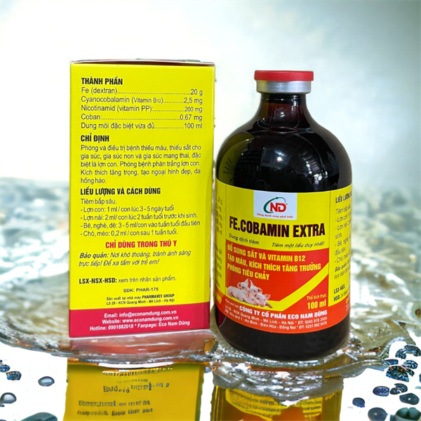 Giải pháp bổ sung sắt (Fe Dextran) hàm lượng cao, kết hợp Vitamin B12 và Coban, hỗ trợ tối ưu cho sự phát triển của gia súc non, đặc biệt là lợn con.