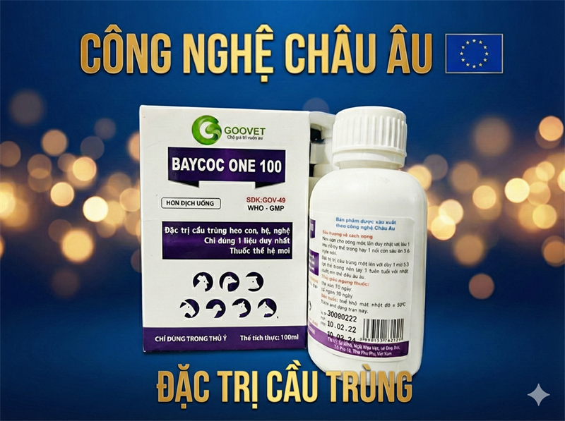 BAYCOC ONE 100 phòng trị bệnh cầu trùng và làm giảm nhiễm trùng đường ruột thứ phát trên heo con theo mẹ và bê, nghé. Nhiễm cầu trùng Isospora suis (heo con) Eimeria bovis, Eimeria zuernii hoặc Eimeria alabamensis là nguyên nhân chính gây tiêu chảy, mất nước, giảm ăn, giảm tăng trọng đôi khi chết ở bê, nghé.
