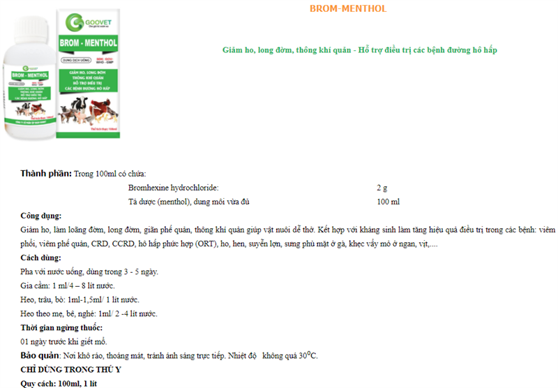 GOOVET BROM MENTHOL Oral 1 lít – Chai