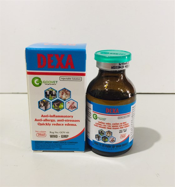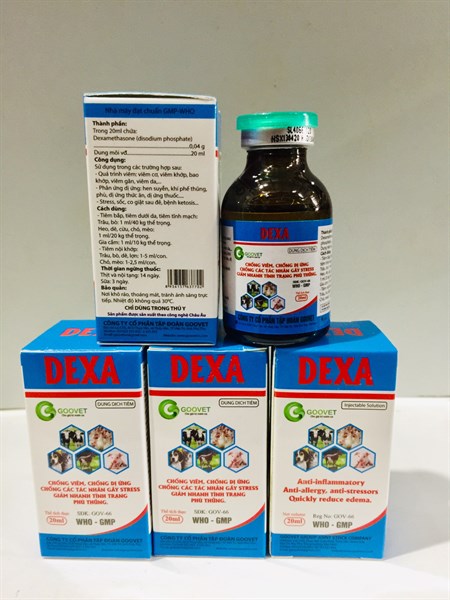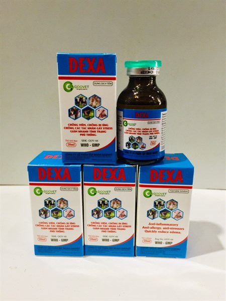Thuốc thú y DEXA – Chống viêm, chống dị ứng, chống các tác nhân gây stress, giảm nhanh tình trạng phù thũng.