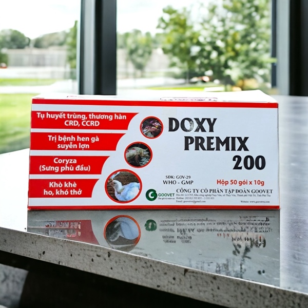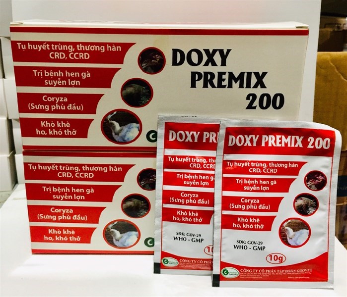 DOXY PREMIX 200 – Phòng và trị bệnh hen gà, suyễn lợn, tụ huyết trùng, thương hàn, CRD, CCRD, Coryza, khò khè, ho, khó thở.