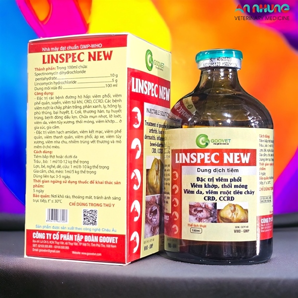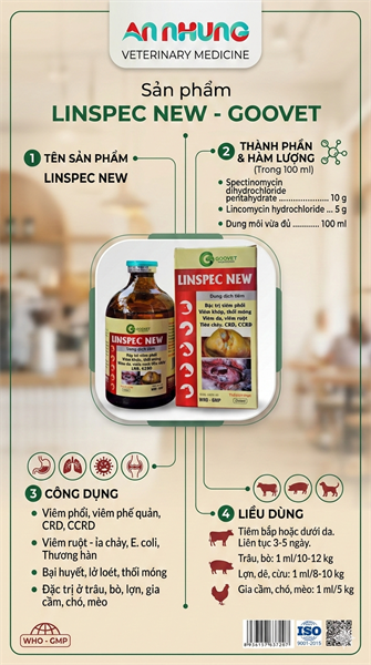 Dung Dịch Tiêm GOOVET LINSPEC NEW 100ml – Hỗ Trợ Xử Lý Viêm Phổi, Viêm Khớp, Tiêu Chảy Cho Gia Súc, Gia Cầm.