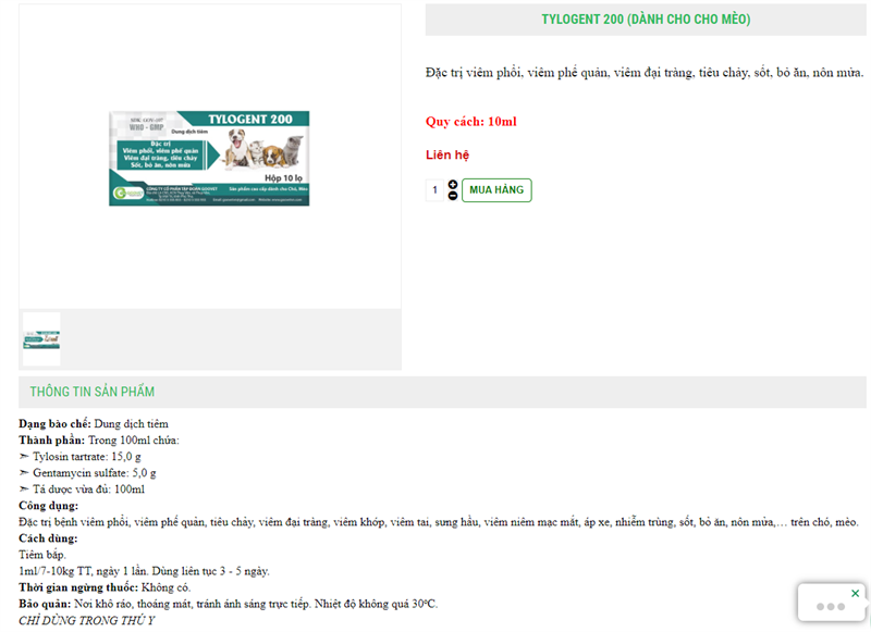 TYLOGENT 200 (DÀNH CHO CHO MÈO)