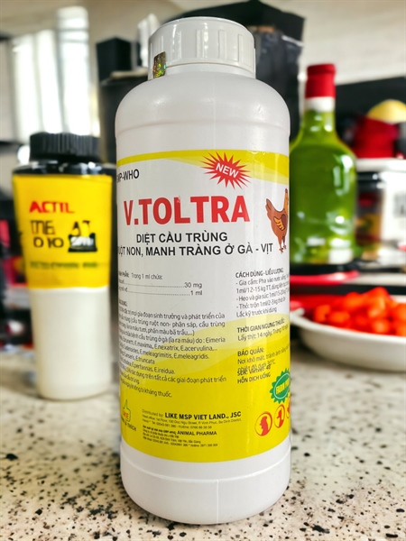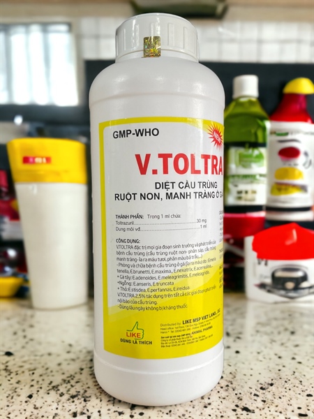 V.TOLTRA là một sản phẩm dùng trong thú y, chứa hoạt chất Toltrazuril, được sử dụng để điều trị bệnh cầu trùng ở gà, gà tây, ngỗng và thỏ. Dưới đây là thông tin chi tiết về sản phẩm: