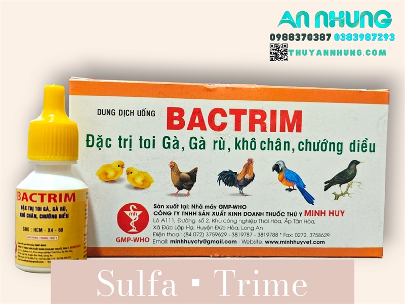 Minh Huy Bactrim ( SulfaTrime ) 10ml – Gà rù, gà toi, khô chân, chướng diều – Hộp