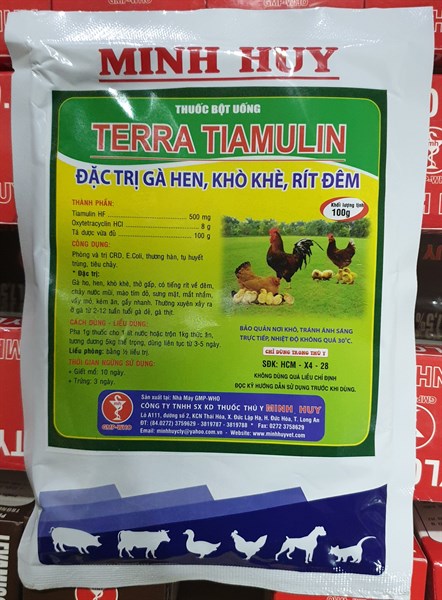 Minh Huy Tera Tiamulin 100gr – Hen gà, Khò khè, rít đêm – gói