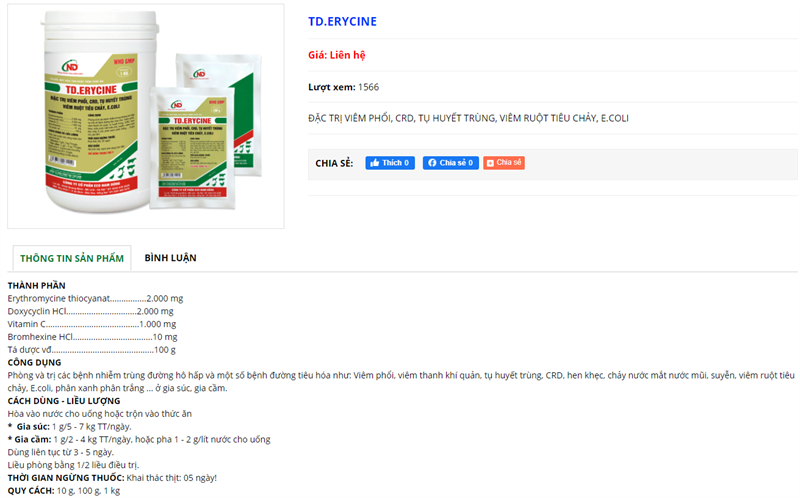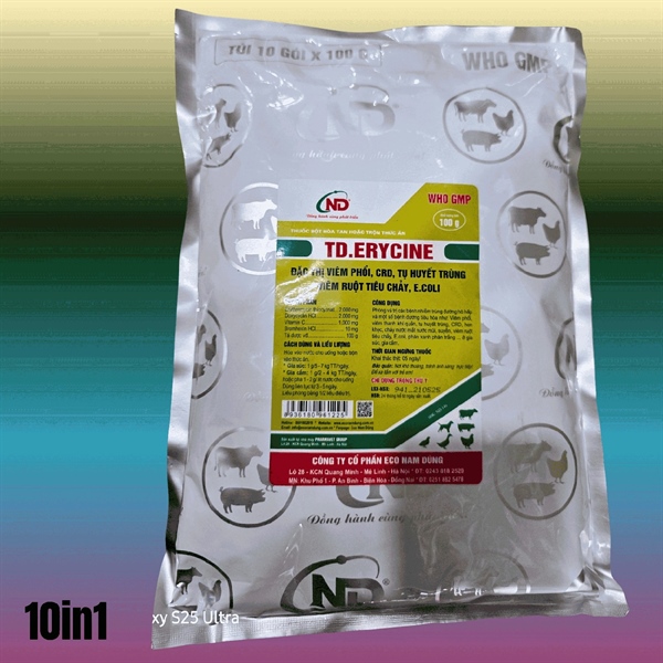 ND Erycine 100gr – CRD, Phổi, Tụ Huyết Trùng, Ecoli – gói