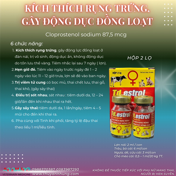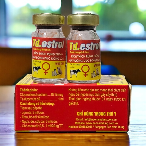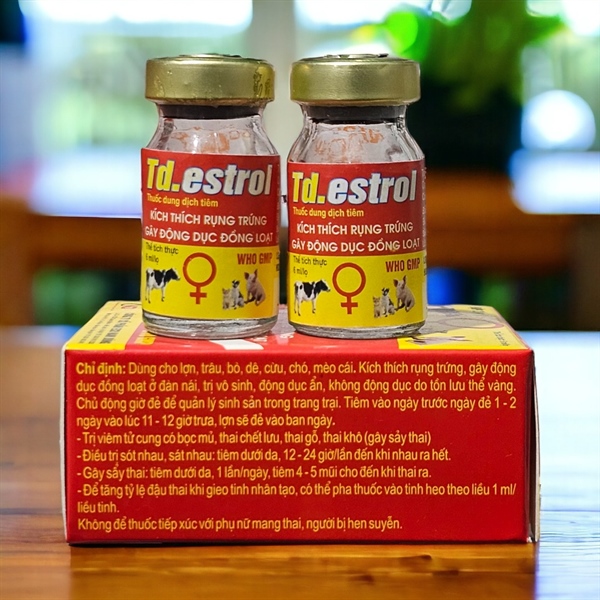 Dung Dịch Tiêm TD.ESTROL (Hộp 2 lọ x 6ml) – Kích Thích Rụng Trứng, Gây Động Dục Đồng Loạt Cho Heo, Trâu, Bò, Dê