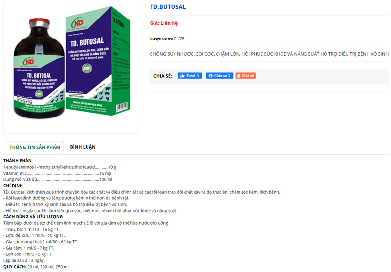 Hãy là người đầu tiên nhận xét “ND TD Butosal – Lọ 20ml” Hủy