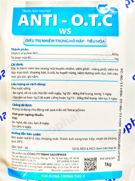🚫 Không dùng cho vật nuôi quá mẫn cảm với Tetracyclines.