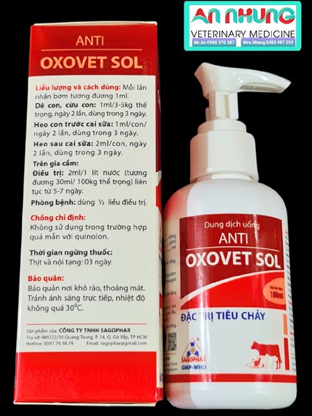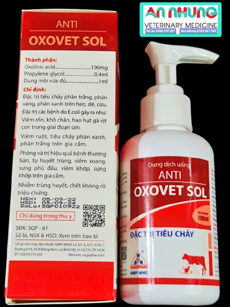 Sagophar Anti – Oxovet Sol – Viêm ruột, viêm khớp, Viêm hô hấp , úm gia cầm – Chai