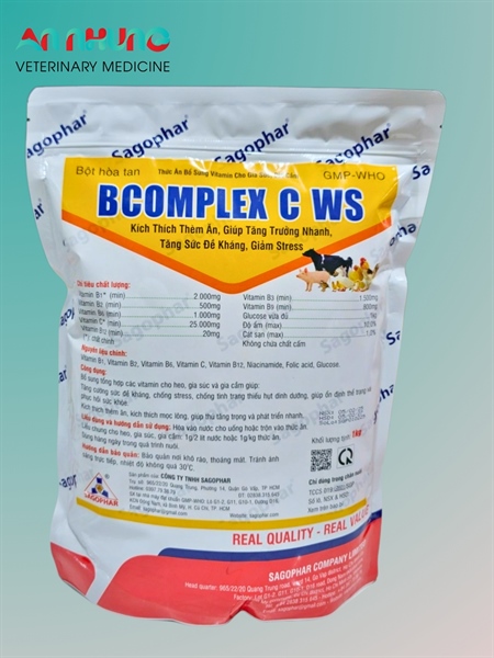 ✅ BCOMPLEX C WS là thuốc bột hòa tan, sản phẩm chất lượng cao của CÔNG TY TNHH SAGOPHAR, được sản xuất theo tiêu chuẩn GMP-WHO. Sản phẩm là sự kết hợp hoàn hảo giữa các Vitamin nhóm B, Vitamin C và Glucose, mang lại hiệu quả vượt trội trong việc kích thích thèm ăn, tăng trưởng nhanh, tăng sức đề kháng và giảm stress cho vật nuôi.