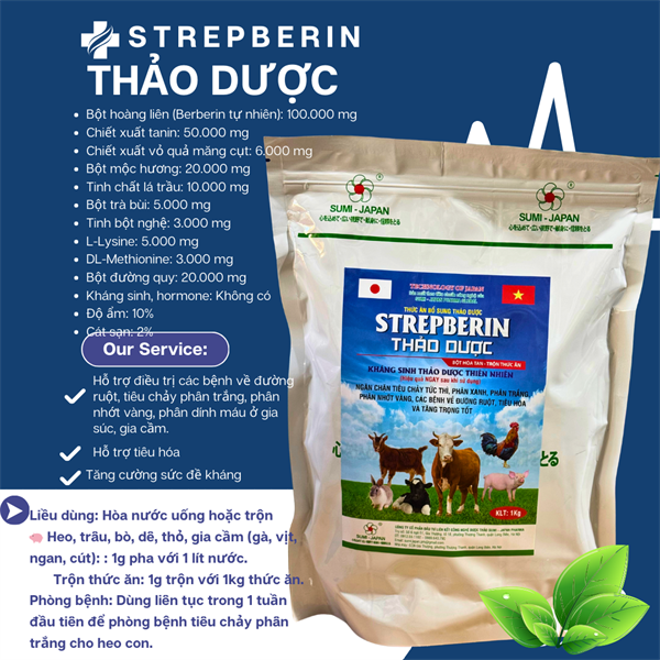 ✨ STREPBERIN THẢO DƯỢC: HỖ TRỢ PHÒNG VÀ ĐIỀU TRỊ CÁC BỆNH VỀ ĐƯỜNG RUỘT CHO VẬT NUÔI ✨