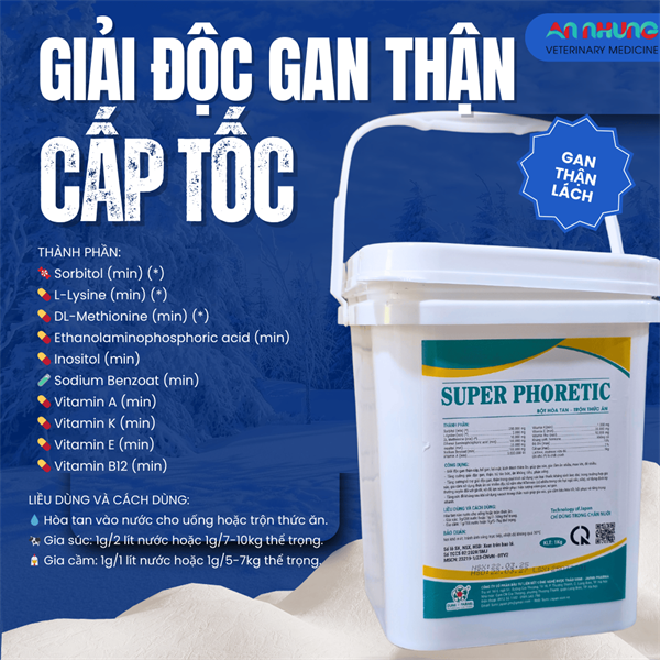 SUPER PHORETIC là giải pháp tối ưu giúp giải độc gan thận cấp tốc, bảo vệ và phục hồi chức năng gan, thận, lá lách cho vật nuôi.