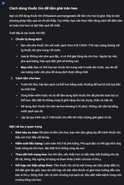 Rửa vết thương, ghẻ lở, nấm da: Pha dung dịch 1% (1g cho 100ml nước), rửa sạch vùng da bị ảnh hưởng 1-2 lần/ngày.