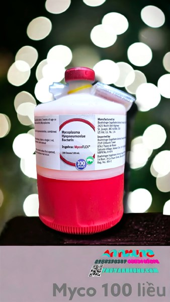 INGELVAC MYCOFLEXMÔ TẢĐiểm đặc trưng Vắc-xin phòng Mycoplasma với chất bổ trợ độc quyền (ImpranFLEX®) Bảo hộ đàn heo đến khi xuất chuồng chỉ với 1 lần tiêm (1ml) Có thể pha trộn với Ingelvac CircoFLEX® để phòng cùng lúc 2 bệnh: Mycoplasma và PCV2 chỉ với 1 lần tiêm Có thể pha trộn với Ingelvac CircoFLEX® và Ingelvac PRRS MLV để phòng cùng lúc 3 bệnh: Mycoplasma, PCV2 và PRRS chỉ với 1 lần tiêm Hiệu quả vượt trội và đã được kiểm chứng trên toàn thế giớiLiều lượng và cách sử dụng Chủng ngừa cho heo khỏe mạnh để phòng và kiểm soát bệnh viêm phổi địa phương do Mycoplasma hyopneumoniae Tiêm 1 liều duy nhất (1 ml) cho heo con từ 2-3 tuần tuổi Lắc kỹ trước khi sử dụngLưu ý Bảo quản ở 2-80C. Không được để đông đá. Sau khi mở chai phải sử dụng hết, phần còn lại tiêu hủy Không chủng ngừa trong vòng 21 ngày trước khi giết thịt Phản ứng quá mẫn có thể xảy ra, sử dụng Epinephrine để điều trịDạng trình bày Chai 10 liều (10 ml) Chai 50 liều (50 ml)MÔ TẢ