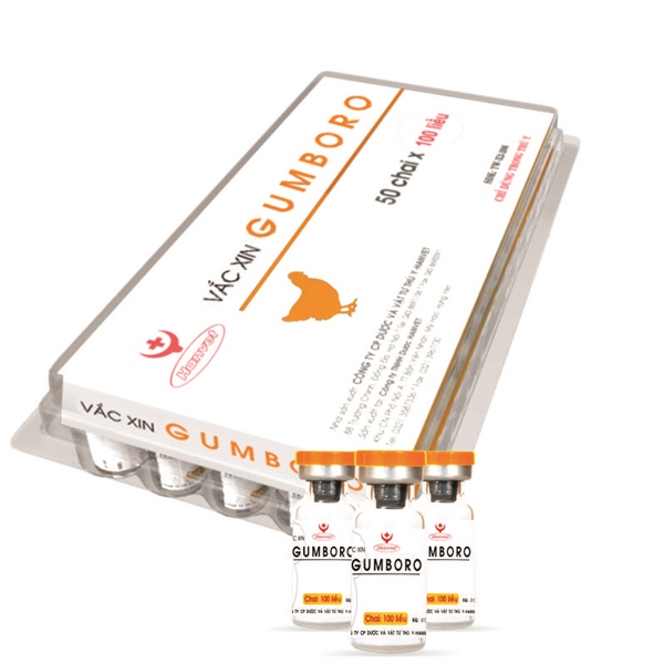 Mô tả: Vắc xin đông khô, mỗi liều vacxin chứa ít nhất chứa ít nhất 103 TCID50 virus Gumboro nhược độc và chất bổ trợ.Chỉ định: phòng bệnh Gumboro cho gà khỏe mạnh ở mọi lứa tuổi.Cách dùng và lịch trình:Cách dùng:Nhỏ mắt, nhỏ mũi từng con: Dùng dung môi đã làm mát để pha vacxin. Căn cứ vào số liều ghi trên nhãn để pha, sao cho cứ 0,1 ml chứa một liều vacxin.Có thể cho uống toàn đàn với gà lớn trên 3 tuần tuổi.Lịch trình: dùng cho mỗi con 1 liều theo hướng dẫnLần 1: dùng cho gà từ 5 – 10 ngày tuổi.Lần 2: dùng cho gà từ 20 – 25 ngày tuổi.Chống chỉ định: Gà đang ốm.Một số chú ý khi sử dụng:Vacxin luôn được bảo quản ở nhiệt độ 2-80cChỉ pha vacxin bằng dung môi pha vacxin, không dùng các loại nước có chứa các chất sát trùng (như Chloramine trong nước máy) để pha.Tất cả các dụng cụ tiêm phòng phải tiệt trùng bằng nhiệt trước khi dùng, không sử dụng các dụng cụ sát trùng bằng hóa chất.Lọ vacxin đã pha được giữ trong nước đá, tránh ánh sáng mặt trời và chỉ sử dụng trong 2 – 3 giờ.Kiểm tra kỹ lô vacxin trước khi sử dụng, không dùng các chai đã nứt, vỡ, hở, không khí đã vào, nhãn mờ nhòe, quá hạn sử dụng, bị phơi nắng hay để ở nhiệt độ không đúng quy định.Thời gian ngưng sử dụng: KhôngBảo quản: Bảo quản ở nhiệt độ 2- 80c, tránh ánh sáng trực tiếp.Hạn sử dụng: 18 tháng kể từ ngày sản xuất