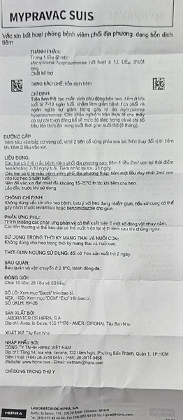 Mycoplasma hyopneumoniae vô hoạt ≥ 50 AMU