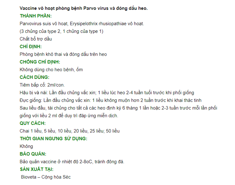 PARVOSIN-OL – Vaccine phòng bệnh khô thai, sảy thai, chết lưu trên Heo nái